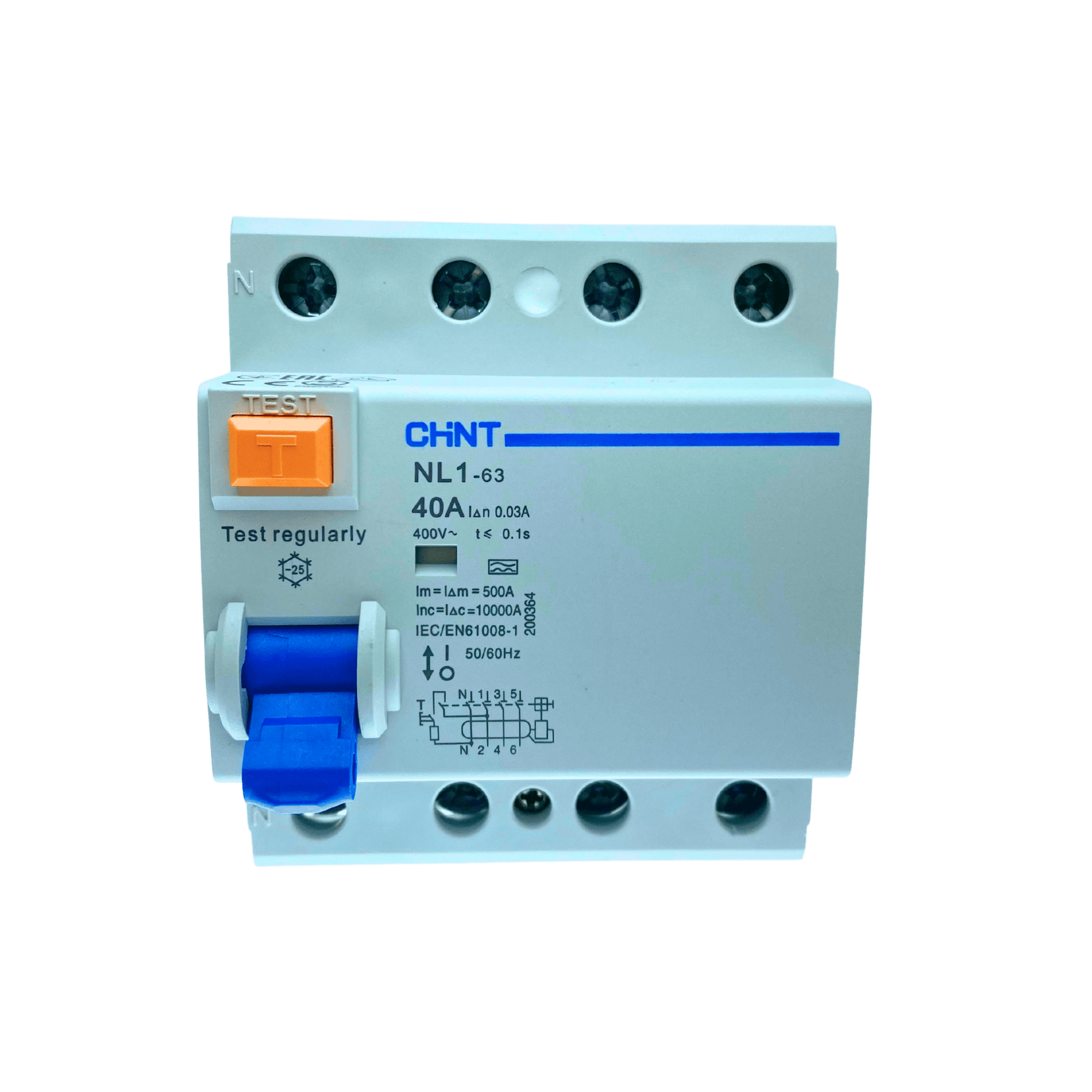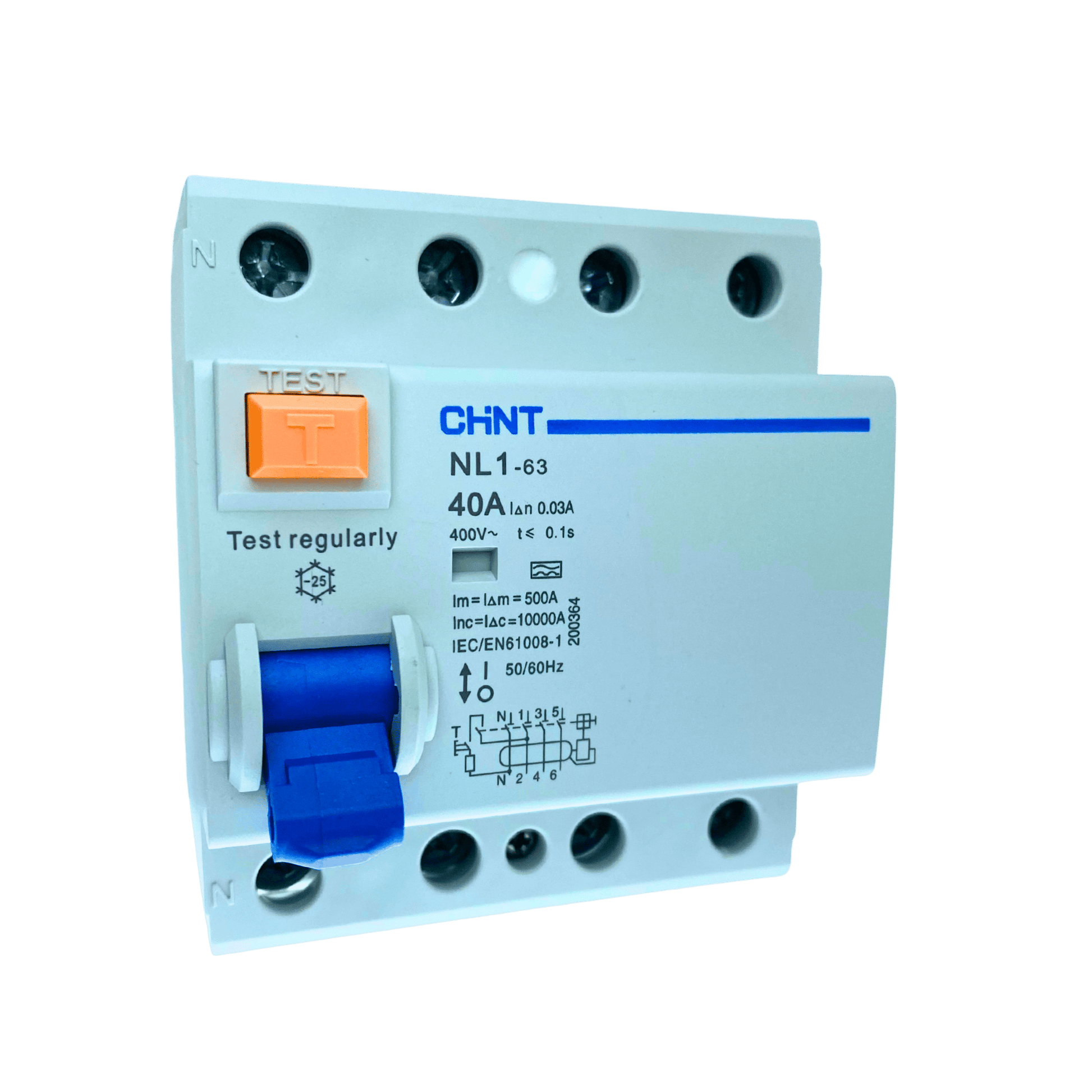 Der CHINT NL1-63 ist ein hochwertiger FI-Schutzschalter (RCD) mit 4 Polen, 40 A Nennstrom und 30 mA Auslösestrom. Er schützt zuverlässig Personen und Anlagen vor gefährlichen Fehlerströmen. Zulassung: VDE-geprüft und zertifiziert – erfüllt höchste deutsche Sicherheitsstandards.