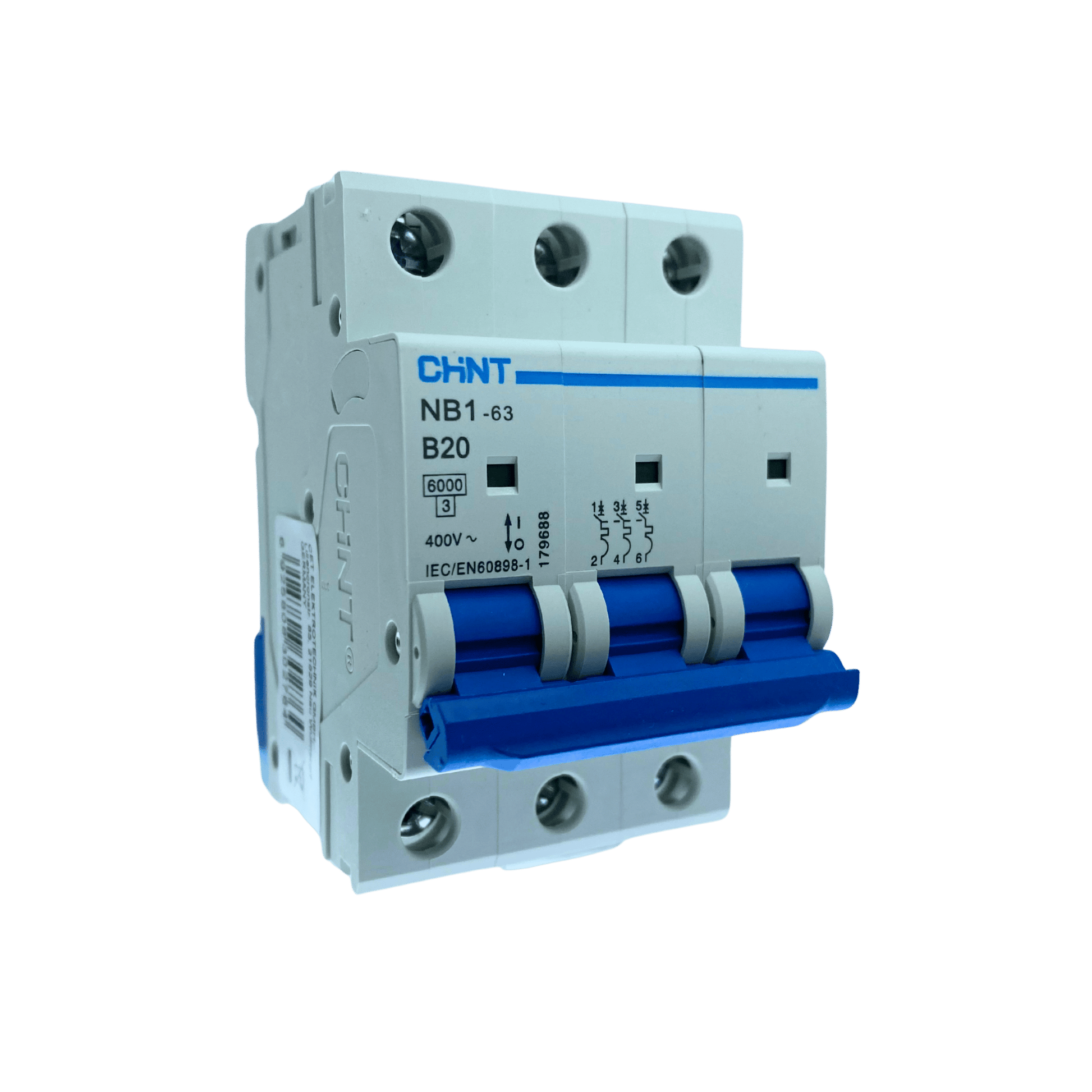 Der CHINT NB1-63 3P B20 6kA (Artikelnummer 179688) ist ein dreipoliger Sicherungsautomat (MCB), der Leitungen und Anlagen zuverlässig vor Überlast und Kurzschluss schützt. Mit einer Auslösecharakteristik vom Typ B, einem Bemessungsstrom von 20 A und einem Schaltvermögen von 6 kA ist er für den Einsatz in Wohn-, Gewerbe- und Industrieanwendungen geeignet. Dank VDE-Zertifizierung erfüllt er höchste Sicherheits- und Qualitätsstandards.